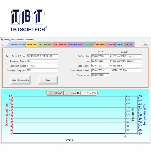 Each TBTBBR-1 consists of load frame, built-in touch screen industrial computer, fluid bath, chiller, calibration kit, air compressor and power box.
