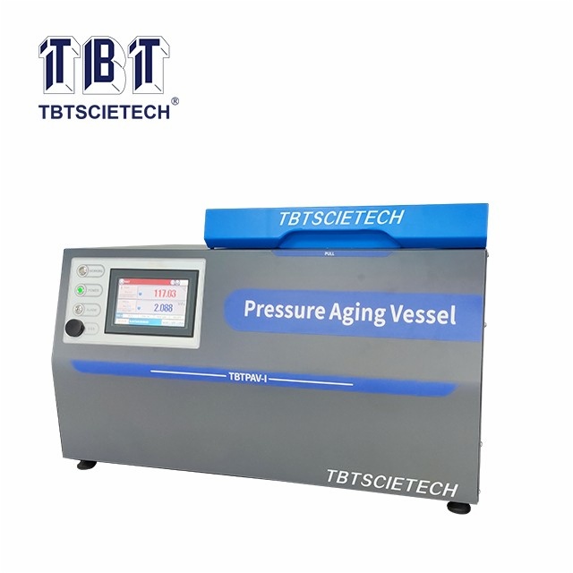 The method is first aged using T 240(RTFOT, TBT-0610W is suitable model). A specified thickness of residue, from the RTFOT, is then placed in stainless steel pans and aged at the specified aging temperature for 20h in a vessel pressurized with air to 2.10 MPa. The aging temperature is selected according to the grade of the asphalt binder. At the completion of the PAV process, the asphalt binder residue is then vacuum degassed.