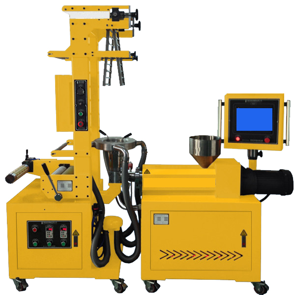 This machine structure is compact, simple operation, sibgle and multi-layer blown film, can be applicable to all polimer dispersion research.